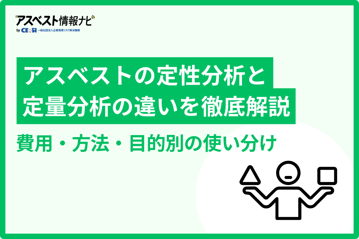 両者の使い分けで重要なのは、すべてのケースで定量分析が必要なわけではない点です。通常の事前調査では定性分析で足りますが、発注者が求める場合、法令で定めるアスベスト含有建材に該当するかを厳密に判断したい場合などには、定量分析まで行うことがあります。